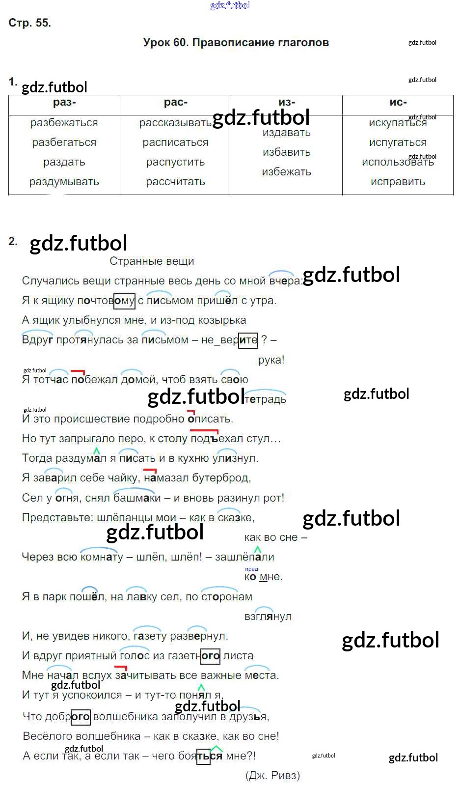 Готовые домашние задания по Русскому языку за 4 класс Кузнецова Рабочая тетрадь Начальная школа XXI века 2018 ФГОС - Часть 1. Страница 55