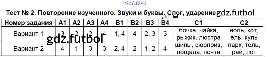 Готовые домашние задания по Русскому языку за 4 класс Никифорова Контрольно-измерительные материалы (КИМ) 2017 ФГОС - Тесты Тесты №2. Повторение изученного. Звуки и буквы. Слог, ударение