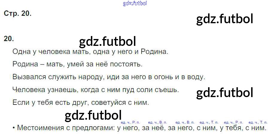 Готовые домашние задания по Русскому языку за 4 класс Песняева Рабочая тетрадь УМК 2017 ФГОС - Часть 1. Страницы 20
