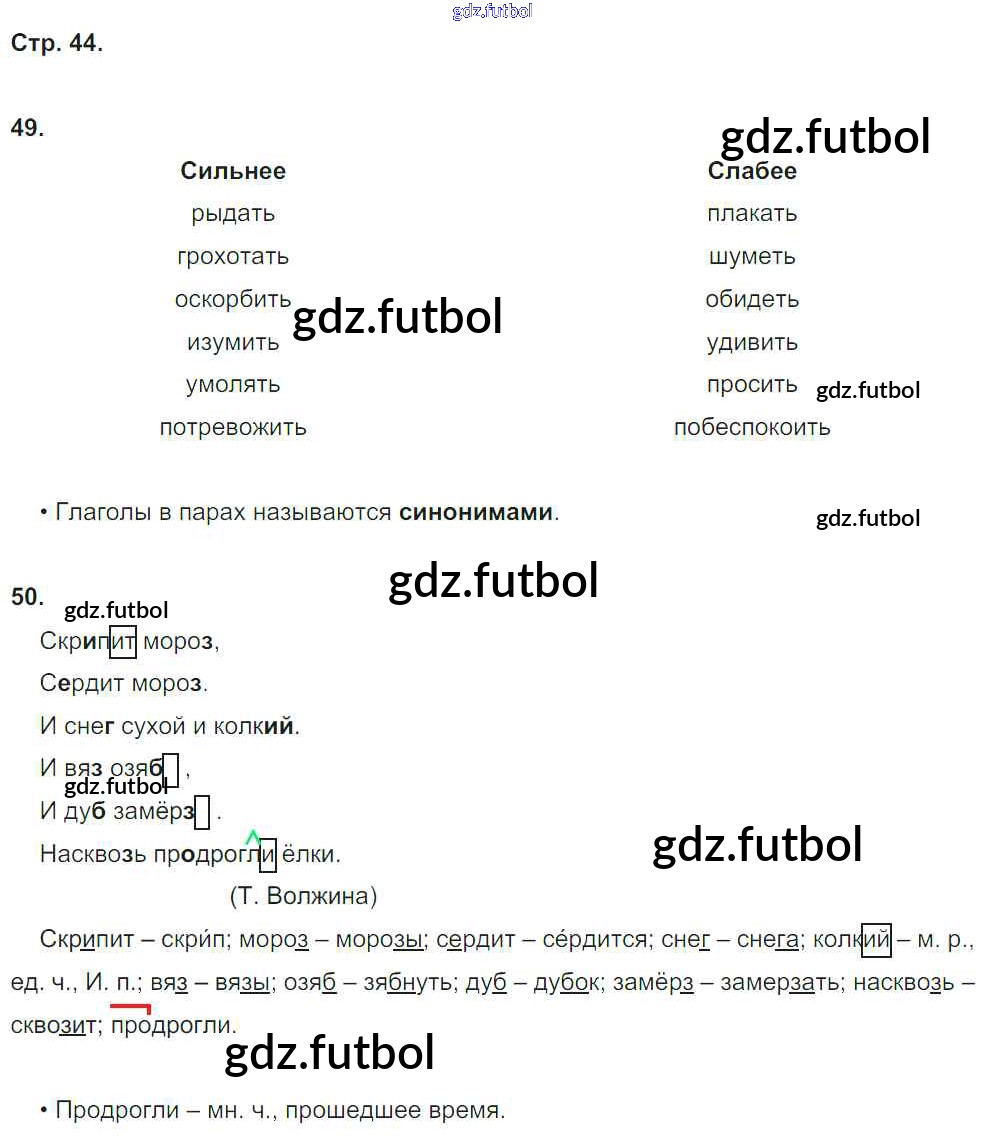 Готовые домашние задания по Русскому языку за 4 класс Песняева Рабочая тетрадь УМК 2017 ФГОС - Часть 1. Страницы 44