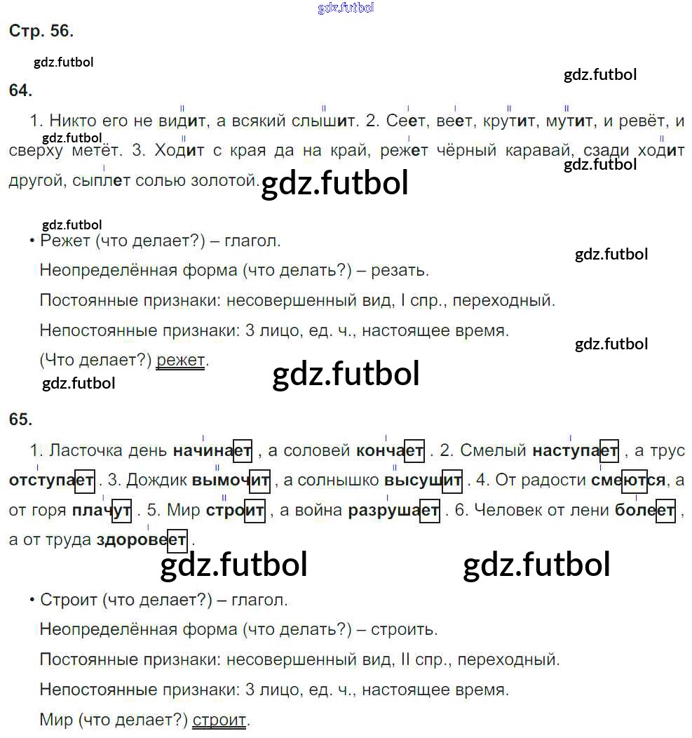 Готовые домашние задания по Русскому языку за 4 класс Песняева Рабочая тетрадь УМК 2017 ФГОС - Часть 1. Страницы 56