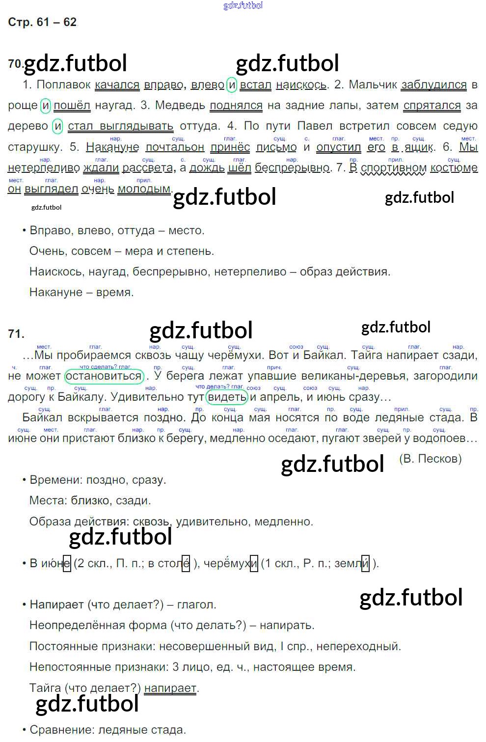 Готовые домашние задания по Русскому языку за 4 класс Песняева Рабочая тетрадь УМК 2017 ФГОС - Часть 1. Страницы 61
