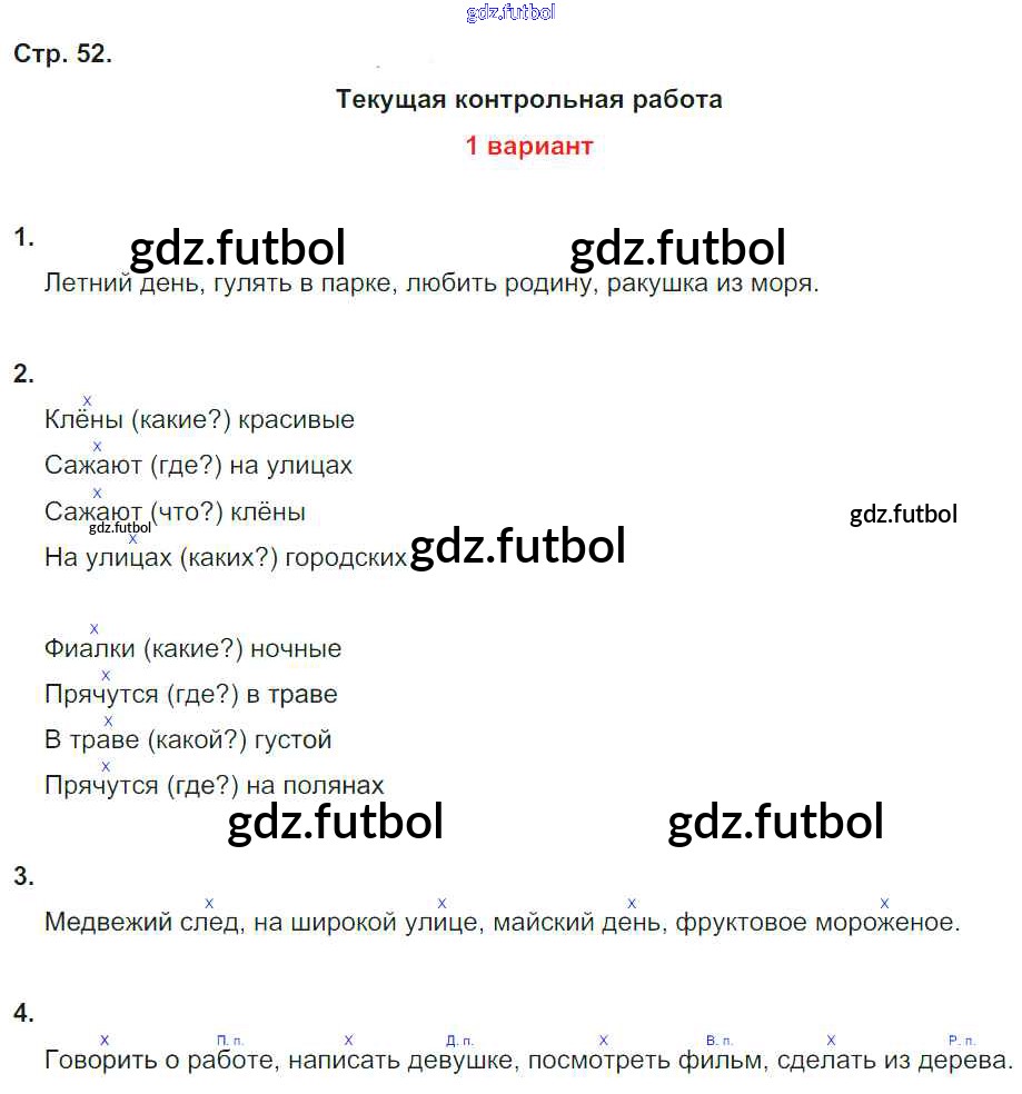 Готовые домашние задания по Русскому языку за 4 класс Романова Тетрадь для контрольных работ Начальная школа XXI века 2018 ФГОС - Страницы 52