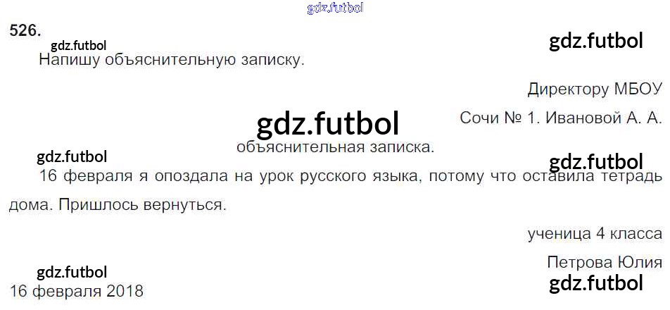 Готовые домашние задания по Русскому языку за 4 класс Соловейчик Учебник Гармония 2015 ФГОС - Часть 2. Упражнения 526