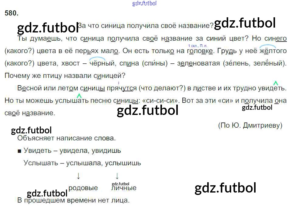 Готовые домашние задания по Русскому языку за 4 класс Соловейчик Учебник Гармония 2015 ФГОС - Часть 2. Упражнения 580
