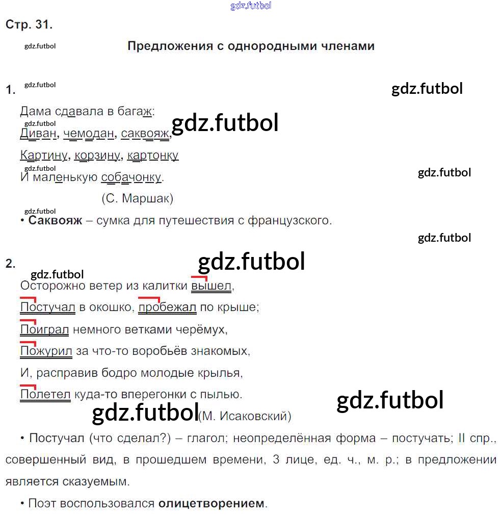 Готовые домашние задания по Русскому языку за 4 класс Тихомирова Рабочая тетрадь УМК 2016 ФГОС - Часть 1. Страницы 31