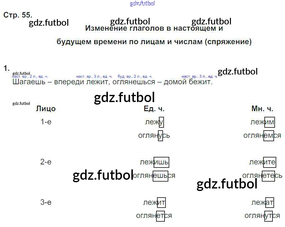 Готовые домашние задания по Русскому языку за 4 класс Тихомирова Рабочая тетрадь УМК 2016 ФГОС - Часть 2. Страницы 55