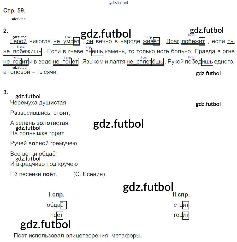 Готовые домашние задания по Русскому языку за 4 класс Тихомирова Рабочая тетрадь УМК 2016 ФГОС - Часть 2. Страницы 59