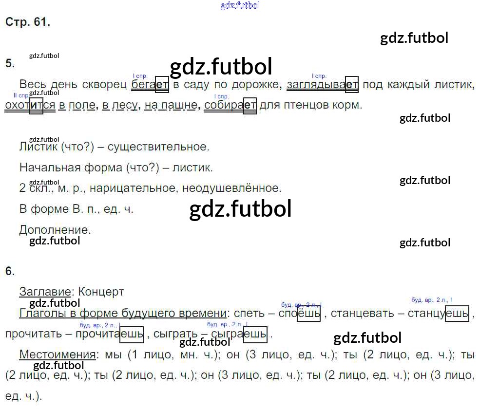 Готовые домашние задания по Русскому языку за 4 класс Тихомирова Рабочая тетрадь УМК 2016 ФГОС - Часть 2. Страницы 61