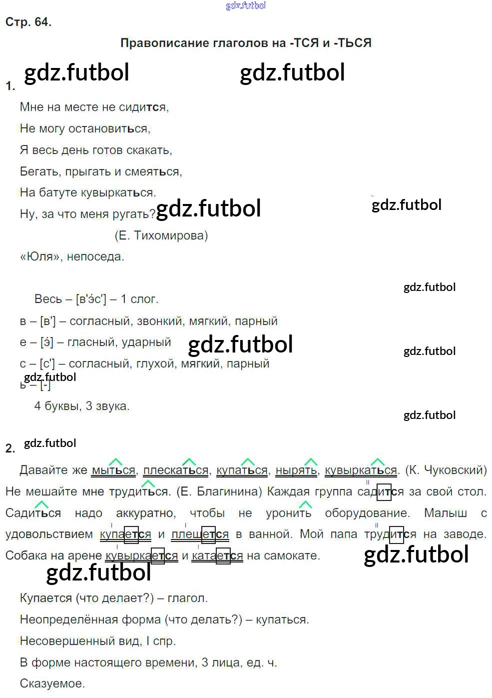 Готовые домашние задания по Русскому языку за 4 класс Тихомирова Рабочая тетрадь УМК 2016 ФГОС - Часть 2. Страницы 64