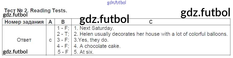 Готовые домашние задания по Английскому языку за 5 класс Лысакова Контрольно-измерительные материалы (КИМ) 2017 ФГОС - Reading Tests 2