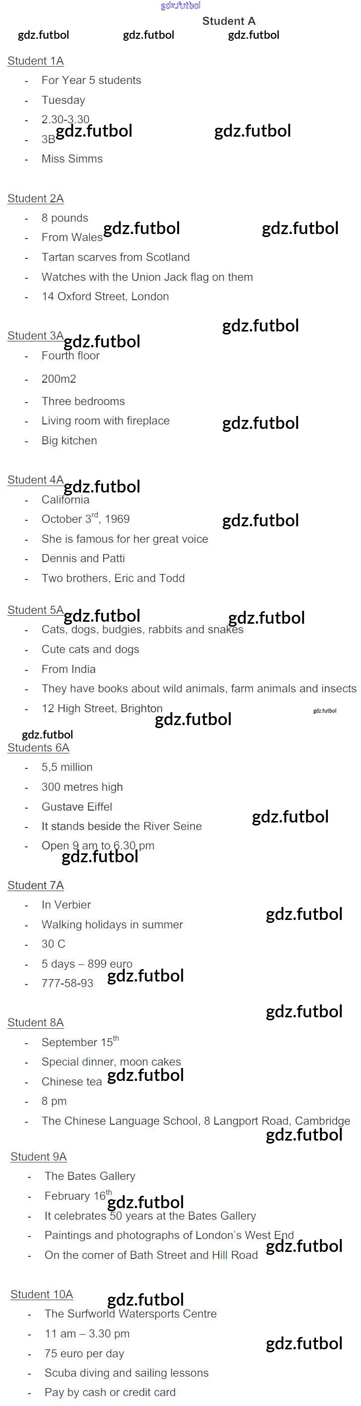 Готовые домашние задания по Английскому языку за 5 класс Ваулина Рабочая тетрадь Spotlight 2016, 2022 ФГОС - Работа в парах Student A