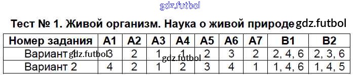 Готовые домашние задания по Биологии за 5 класс Богданов Контрольно-измерительные материалы (КИМ) 2017 ФГОС - Тесты Тест №1. Живой организм. Наука о живой природе