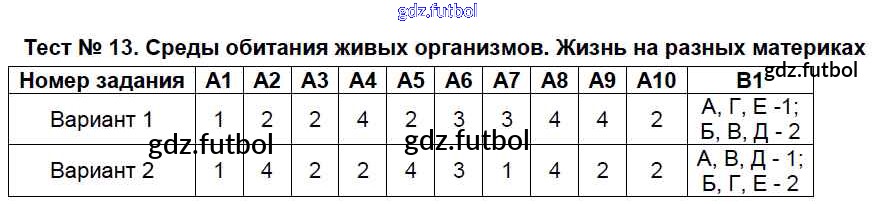 Готовые домашние задания по Биологии за 5 класс Богданов Контрольно-измерительные материалы (КИМ) 2017 ФГОС - Тесты Тест №13. Среды обитания живых организмов. Жизнь на разных материках