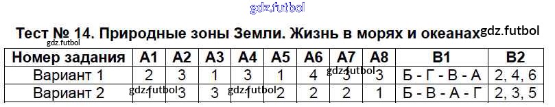 Готовые домашние задания по Биологии за 5 класс Богданов Контрольно-измерительные материалы (КИМ) 2017 ФГОС - Тесты Тест №14. Природные зоны Земли. Жизнь в морях и океанах