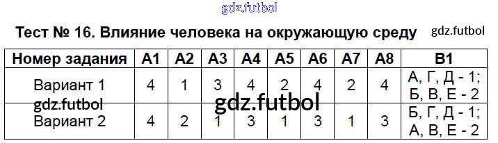 Тест №16. Влияние человека на окружающую среду