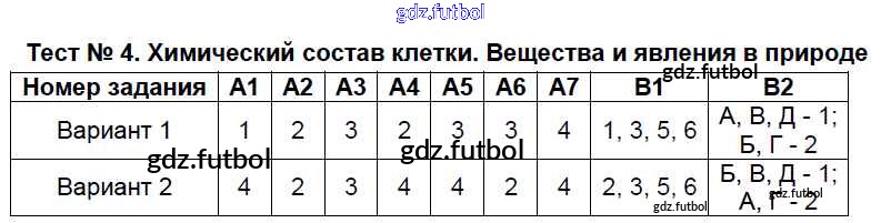 Готовые домашние задания по Биологии за 5 класс Богданов Контрольно-измерительные материалы (КИМ) 2017 ФГОС - Тесты Тест №4. Химический состав клетки. Вещества и явления в природе. Великие естествоиспытатели