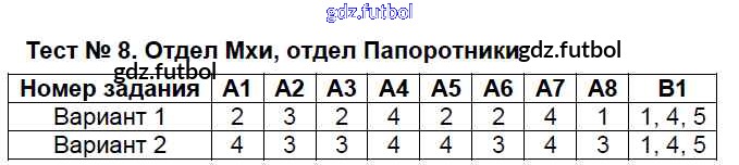 Готовые домашние задания по Биологии за 5 класс Богданов Контрольно-измерительные материалы (КИМ) 2017 ФГОС - Тесты Тест №8. Отдел Мхи, отдел Папоротники