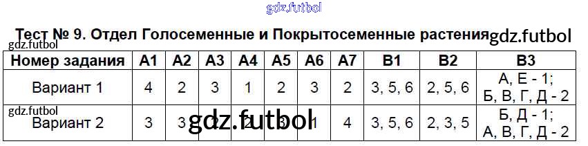 Готовые домашние задания по Биологии за 5 класс Богданов Контрольно-измерительные материалы (КИМ) 2017 ФГОС - Тесты Тест №9. Отдел Голосеменные растения. Отдел Покрытосеменные растения