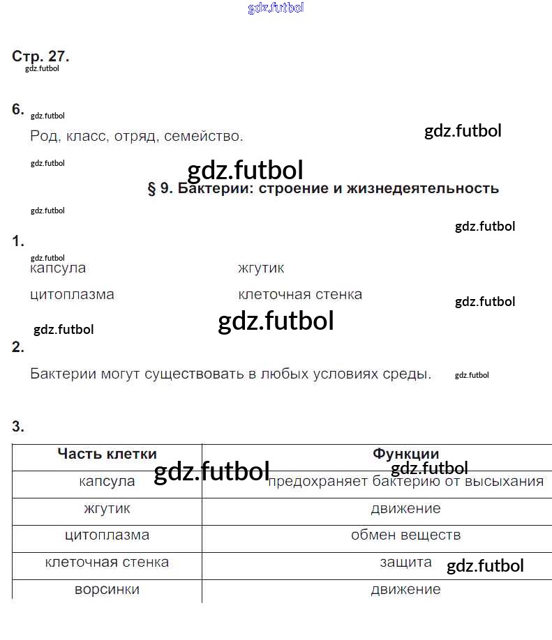 Готовые решения задач (ГДЗ) по Биологии пятый класс Корнилова, Симонова Рабочая тетрадь 2020 ФГОС - Страницы 27 доступны для различных учебных материалов. У нас вы сможете найти авторские решения для всех пособий, предназначенных для школьников. Не секрет, что в настоящее время многие школьники прибегают к использованию готовых решебников, ведь они содержат подробные ответы для каждого упражнения, представленного в учебнике.