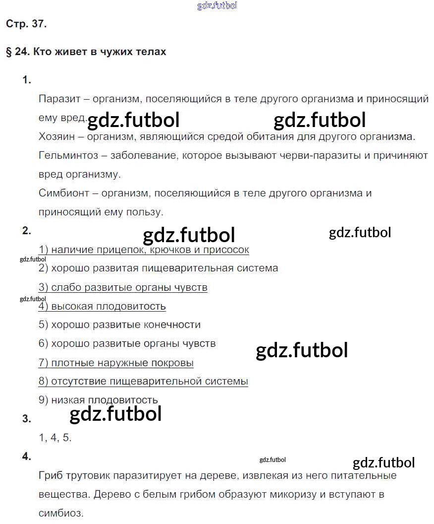 Готовые домашние задания по Биологии за 5 класс Новикова Рабочая тетрадь Инновационная школа 2019 ФГОС - Страницы 37