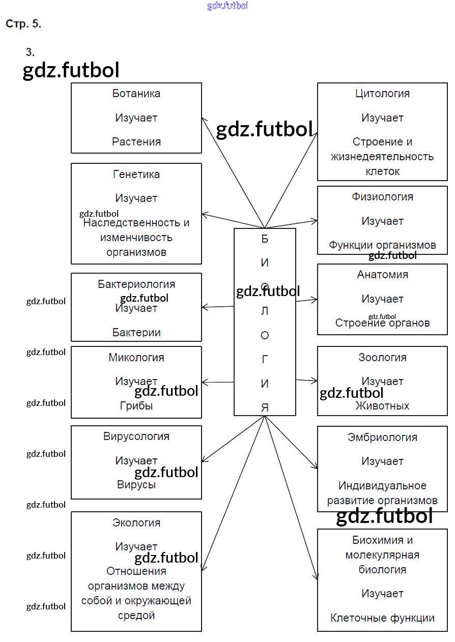 Готовые домашние задания по Биологии за 5 класс Пасечник Рабочая тетрадь Вертикаль 2015 ФГОС - § 1. Биология — наука о живой природе стр. 5
