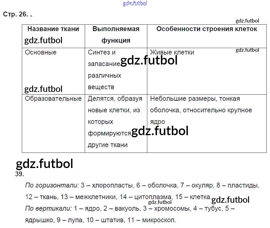 Готовые домашние задания по Биологии за 5 класс Пасечник Рабочая тетрадь Вертикаль 2015 ФГОС - § 10. Ткани стр. 26