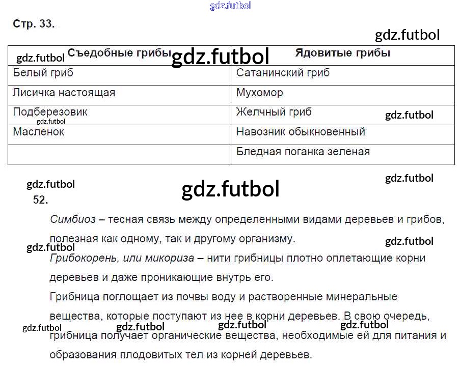 Готовые домашние задания по Биологии за 5 класс Пасечник Рабочая тетрадь Вертикаль 2015 ФГОС - § 14. Шляпочные грибы стр. 33