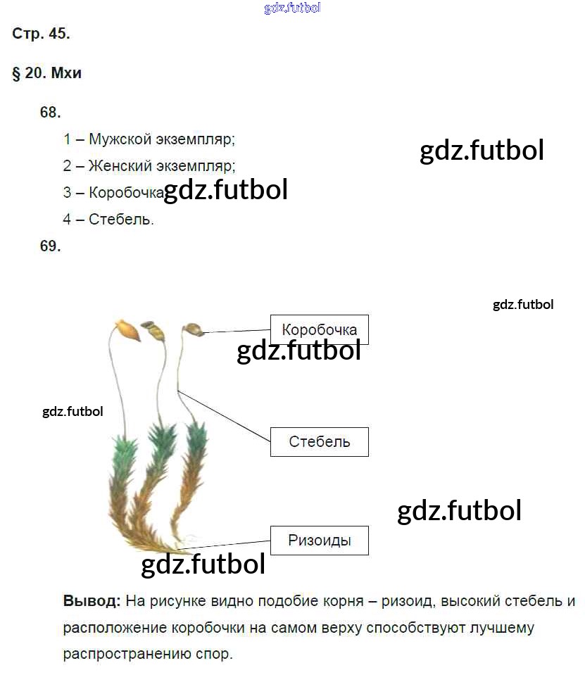 Готовые домашние задания по Биологии за 5 класс Пасечник Рабочая тетрадь Вертикаль 2015 ФГОС - § 20. Мхи стр. 45