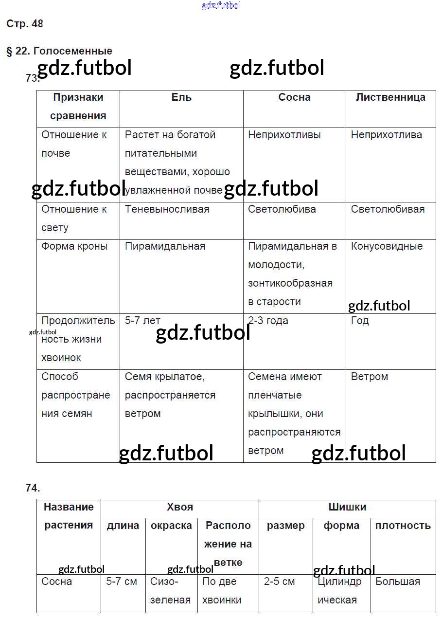Готовые домашние задания по Биологии за 5 класс Пасечник Рабочая тетрадь Вертикаль 2015 ФГОС - § 22. Голосеменные стр. 48