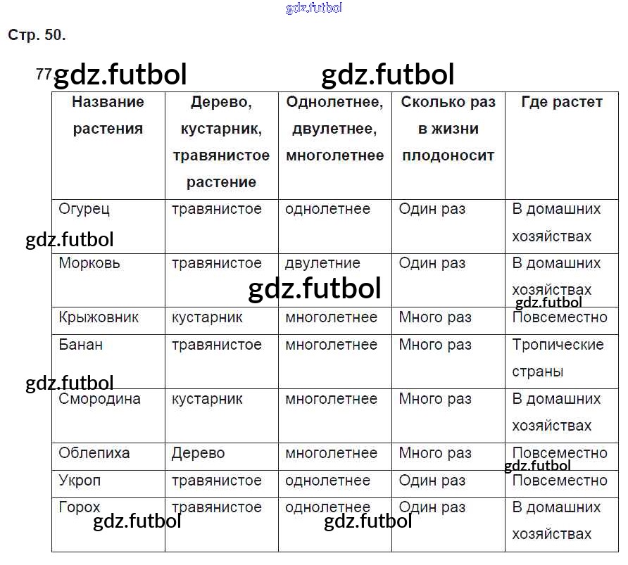 Готовые домашние задания по Биологии за 5 класс Пасечник Рабочая тетрадь Вертикаль 2015 ФГОС - § 23. Покрытосеменные, или Цветковые стр. 50