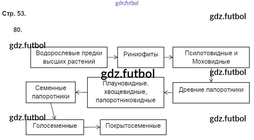 Готовые домашние задания по Биологии за 5 класс Пасечник Рабочая тетрадь Вертикаль 2015 ФГОС - § 24. Происхождение растений. Основные этапы развития растительного мира стр. 53