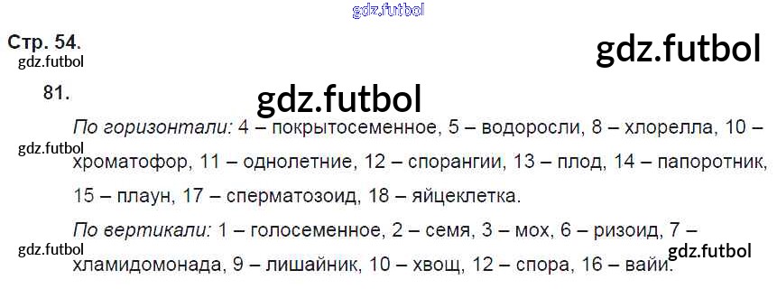 Готовые домашние задания по Биологии за 5 класс Пасечник Рабочая тетрадь Вертикаль 2015 ФГОС - § 24. Происхождение растений. Основные этапы развития растительного мира стр. 54