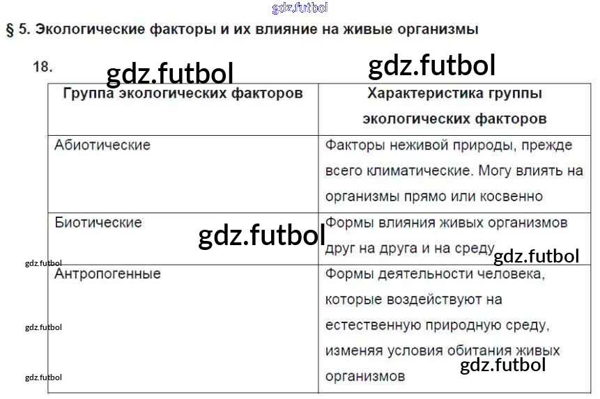 Готовые домашние задания по Биологии за 5 класс Пасечник Рабочая тетрадь Вертикаль 2015 ФГОС - § 5. Экологические факторы и их влияние на живые организмы стр. 12