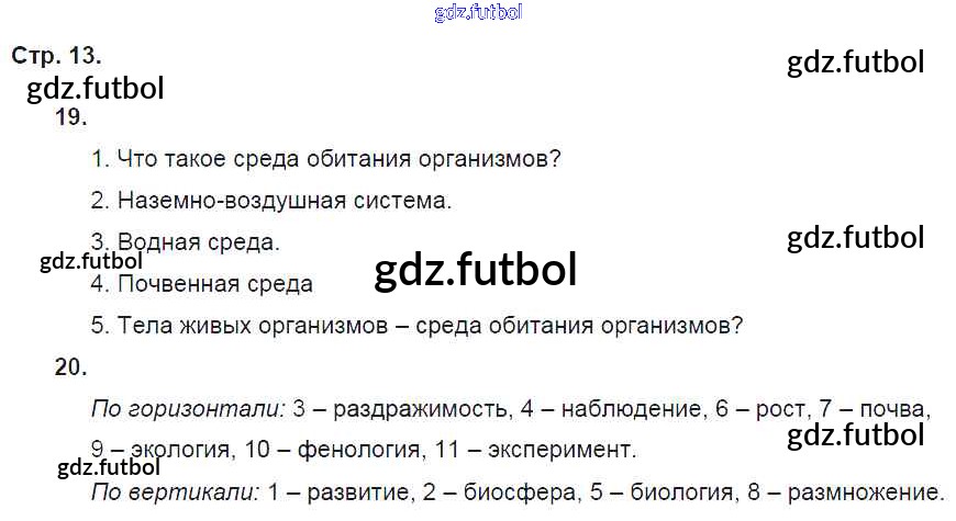 Готовые домашние задания по Биологии за 5 класс Пасечник Рабочая тетрадь Вертикаль 2015 ФГОС - § 5. Экологические факторы и их влияние на живые организмы стр. 13