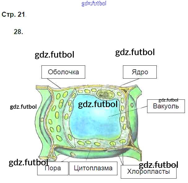 Готовые домашние задания по Биологии за 5 класс Пасечник Рабочая тетрадь Вертикаль 2015 ФГОС - § 7. Строение клетки стр. 21