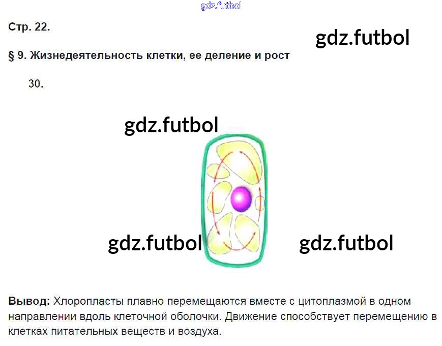 Готовые домашние задания по Биологии за 5 класс Пасечник Рабочая тетрадь Вертикаль 2015 ФГОС - § 9. Жизнедеятельность клетки, её деление и рост стр. 22