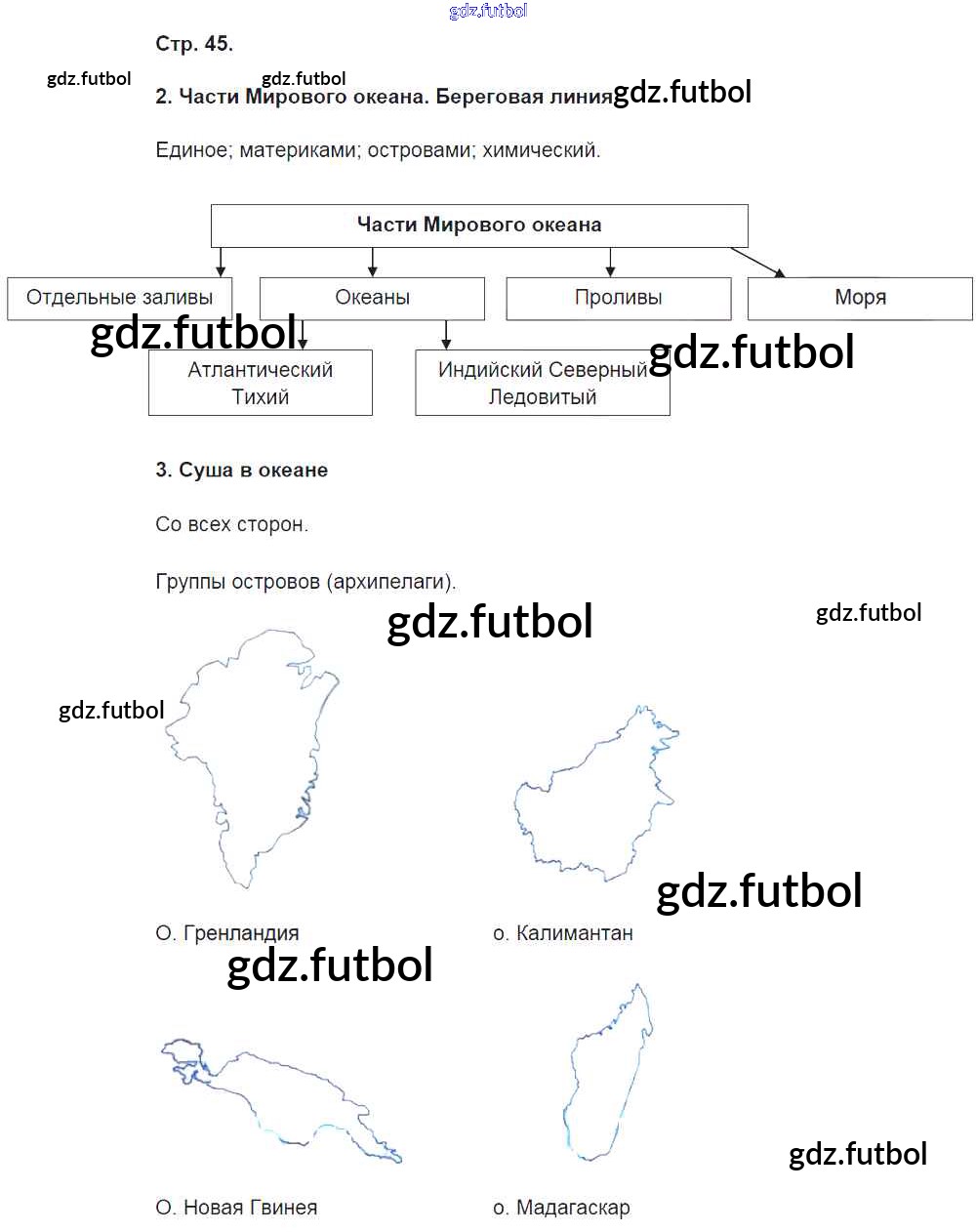 Готовые решения задач (ГДЗ) по Географии пятый класс Летягин Рабочая тетрадь Алгоритм успеха 2020 ФГОС - Страницы 45 доступны для различных учебных материалов. У нас вы сможете найти авторские решения для всех пособий, предназначенных для школьников. Не секрет, что в настоящее время многие школьники прибегают к использованию готовых решебников, ведь они содержат подробные ответы для каждого упражнения, представленного в учебнике.