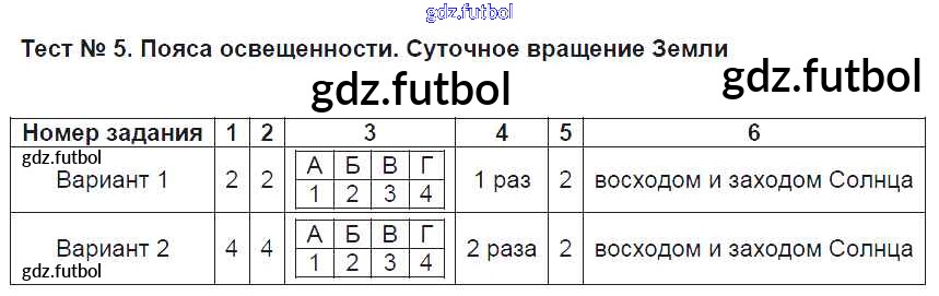 Готовые домашние задания по Географии за 5 класс Пятунин Тесты УМК 2017 ФГОС - Земля как планета солнечной системы Тест 5