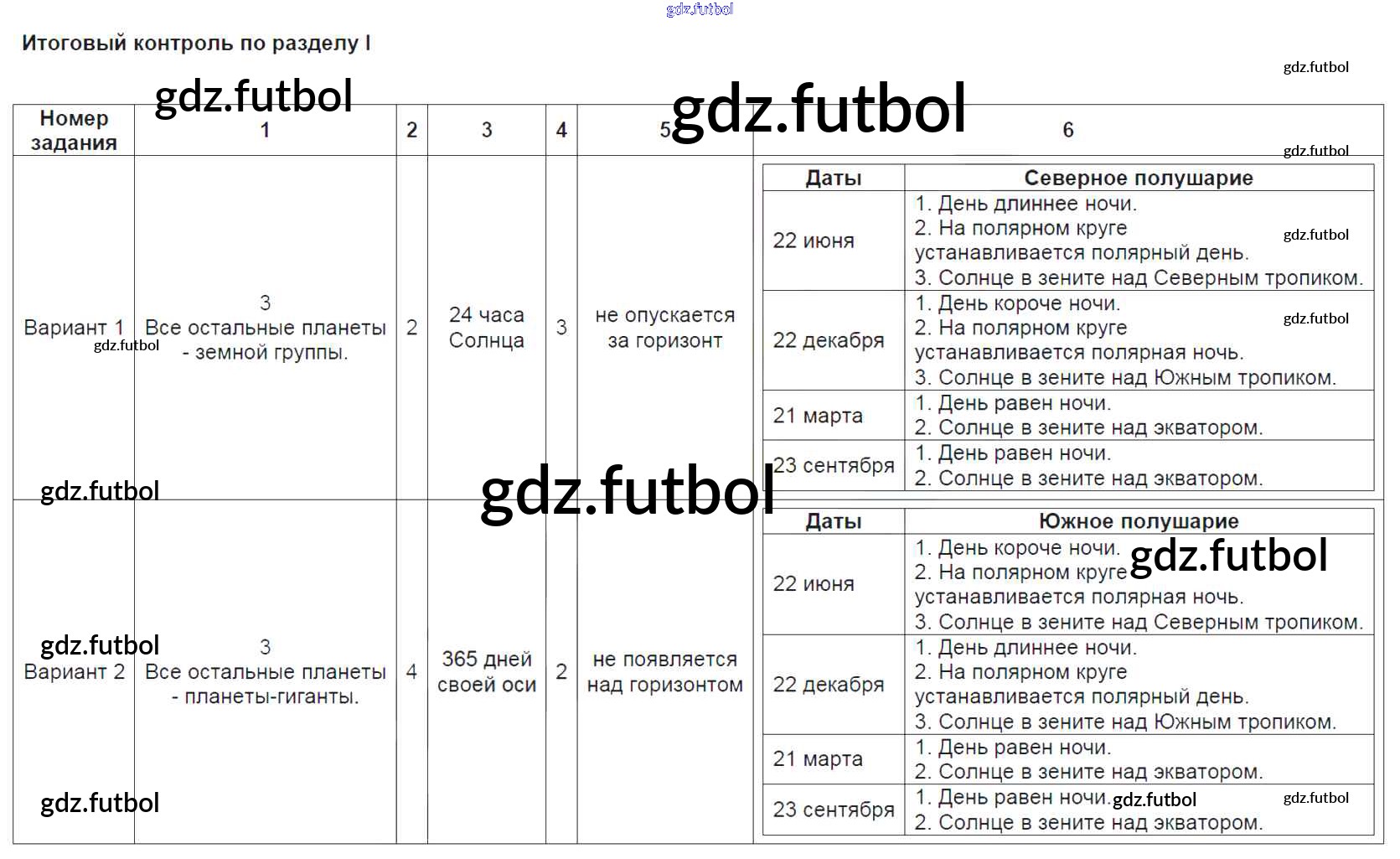 Готовые домашние задания по Географии за 5 класс Пятунин Тесты УМК 2017 ФГОС - Земля как планета солнечной системы Итоговый контроль