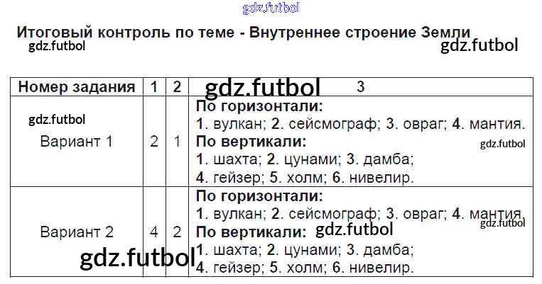 Готовые домашние задания по Географии за 5 класс Пятунин Тесты УМК 2017 ФГОС - Внутреннее строение земли Итоговый контроль