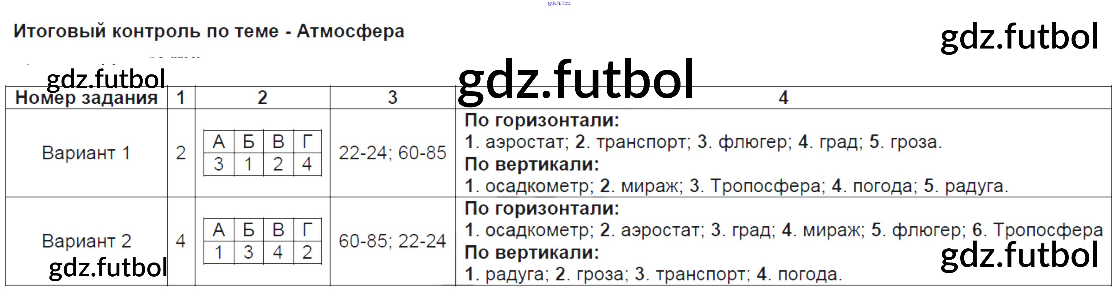 Готовые домашние задания по Географии за 5 класс Пятунин Тесты УМК 2017 ФГОС - Атмосфера Итоговый контроль