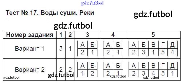 Готовые домашние задания по Географии за 5 класс Пятунин Тесты УМК 2017 ФГОС - Водная оболочка земли Тест 17