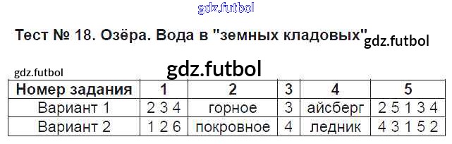 Готовые домашние задания по Географии за 5 класс Пятунин Тесты УМК 2017 ФГОС - Водная оболочка земли Тест 18