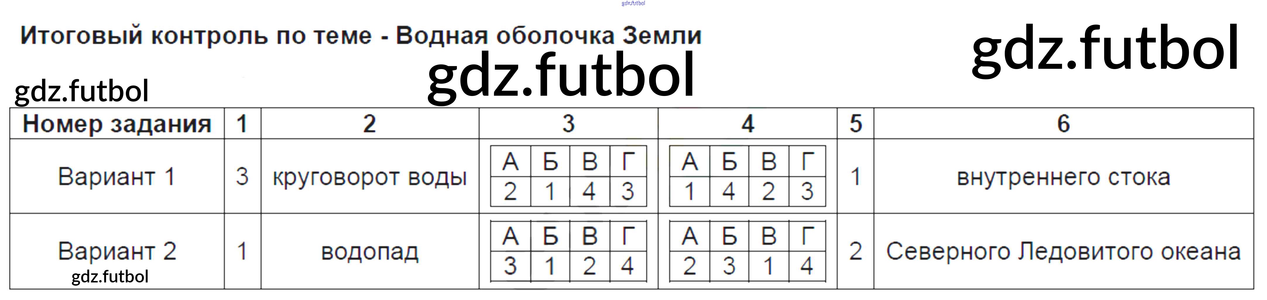 Готовые домашние задания по Географии за 5 класс Пятунин Тесты УМК 2017 ФГОС - Водная оболочка земли Итоговый контроль