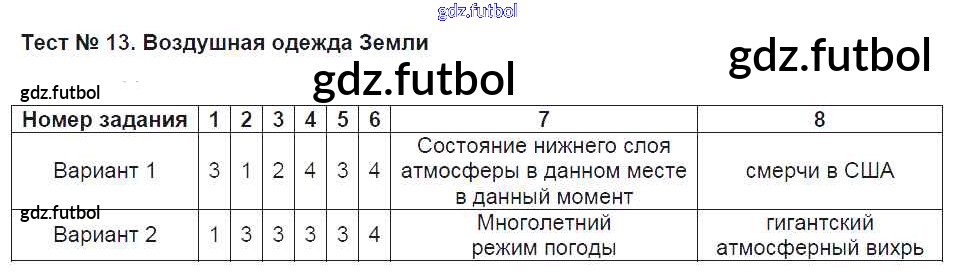 Готовые домашние задания по Географии за 5 класс Жижина Контрольно-измерительные материалы (КИМ) 2018 ФГОС - Тесты 13