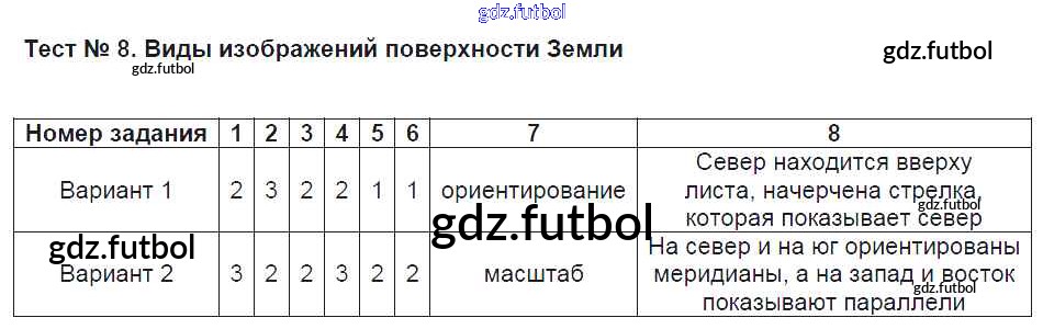 Готовые домашние задания по Географии за 5 класс Жижина Контрольно-измерительные материалы (КИМ) 2018 ФГОС - Тесты 8