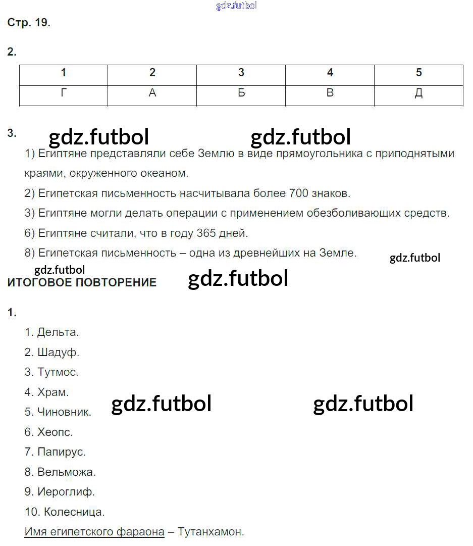 Готовые домашние задания по Истории за 5 класс Абрамов Рабочая тетрадь Вертикаль 2019 ФГОС - Тема 2. Древний Египет стр. 19