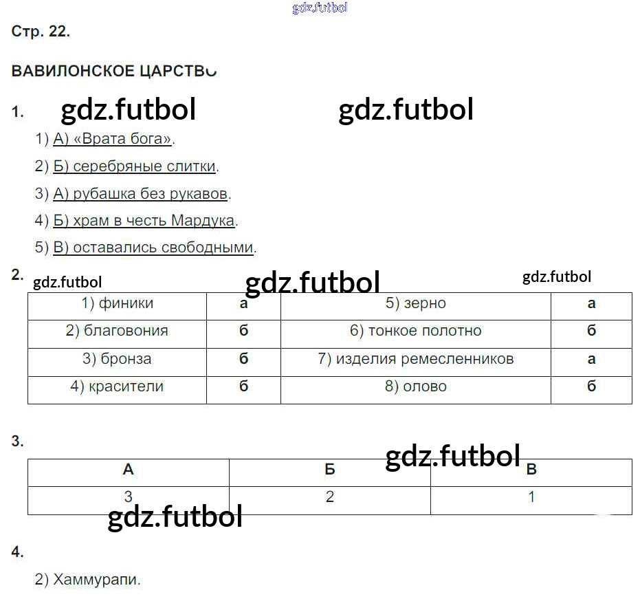 Готовые домашние задания по Истории за 5 класс Абрамов Рабочая тетрадь Вертикаль 2019 ФГОС - Тема 3. Древнейшие государства передней Азии стр. 22