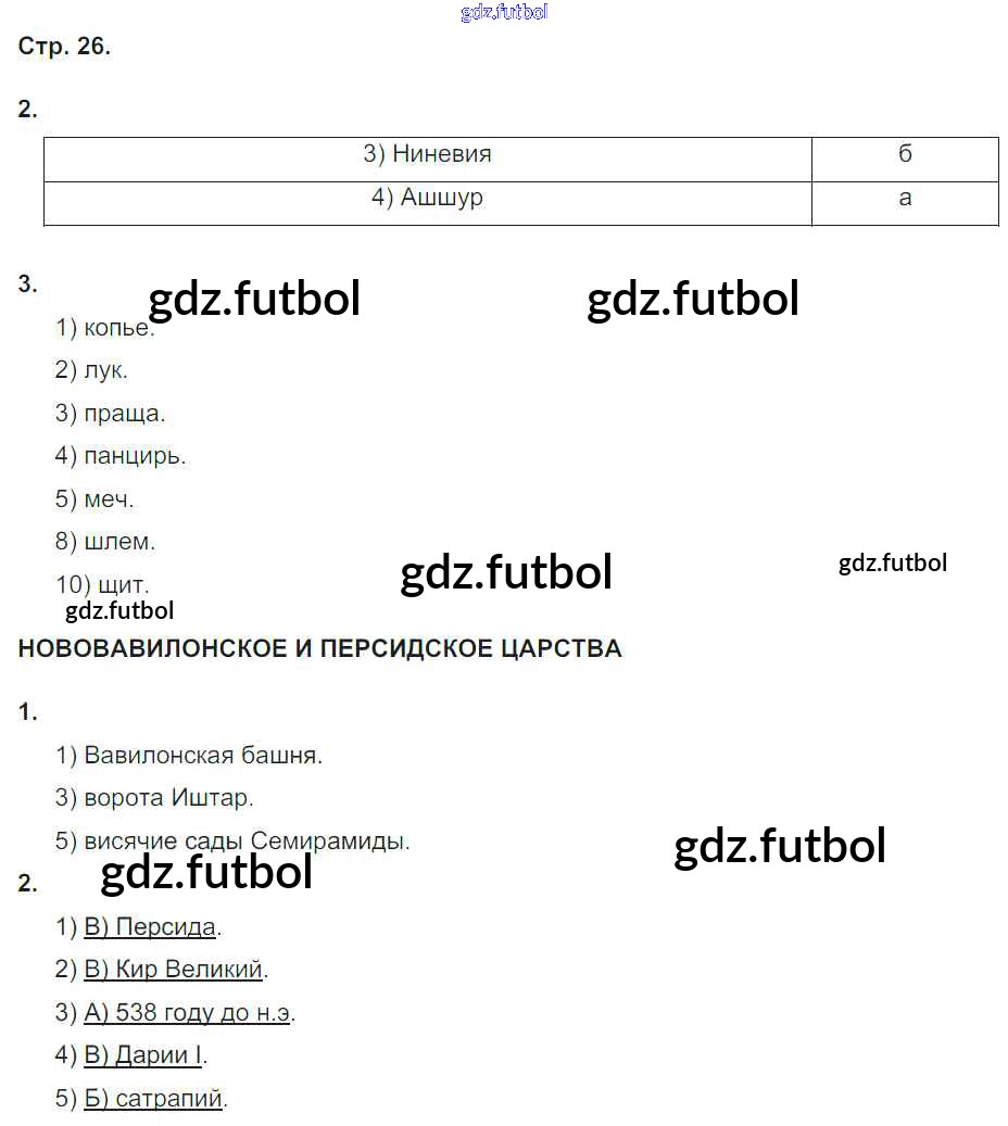 Готовые домашние задания по Истории за 5 класс Абрамов Рабочая тетрадь Вертикаль 2019 ФГОС - Тема 3. Древнейшие государства передней Азии стр. 26